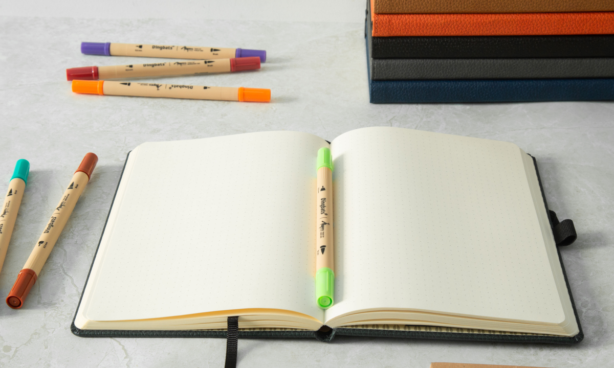 The Dingbats Ātopens offer a combination of dual-tip functionality, high-quality ink, a wide color range, safety, durability, and compatibility with our notebooks, making them a compelling choice for anyone seeking reliable markers for their creative projects. See more